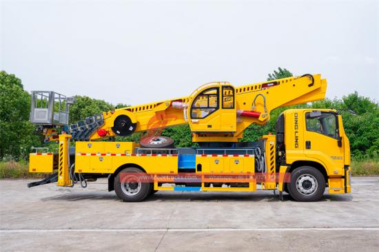 7-section fourteen-sided synchronous telescopic armPlatform udara ISUZU FTR 45m ialah trak khas kejuruteraan profesional yang mengintegrasikan prestasi teknikal dan reka bentuk keselamatan yang sangat baik. Berdasarkan casis ISUZU GIGA FTR Baharu, trak itu dilengkapi dengan enjin 4HK1-TC60 dengan kuasa keluaran maksimum 205 kuasa kuda dan jumlah jisim kenderaan sebanyak 18,000 kg. Trak platform udara Isuzu FTR mempunyai ketinggian kerja maksimum 45 meter, ketinggian platform 27 meter di atas tanah, jejari kerja maksimum 7 meter, dan sistem imbangan statik hidraulik untuk memastikan kestabilan.