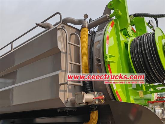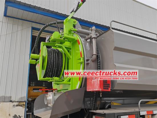 Di bahagian belakang tangki Gabungan disediakan gelendong hos, yang direka untuk menyimpan sehingga 120 meter hos pancutan pembetung yang dibekalkan 1″. Penghantaran dan pemulihan hos pancutan dilakukan melalui hidraulik tork berkelajuan rendah dan tinggi. |