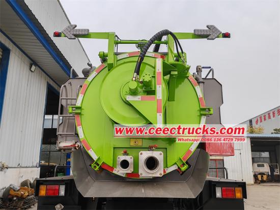 Tangki simpanan kumbahan berkapasiti besar 10cbm (termasuk 8 tangki sedutan padu dan 2 tangki air pembersihan padu)boleh mengendalikan sejumlah besar sisa pada satu masa, meningkatkan kecekapan kerja dengan ketara. Gabungan sempurna fungsi pembersihan dan sedutan kumbahan bukan sahaja dapat membersihkan permukaan jalan dengan mendalam, tetapi juga dengan cepat menyedut kumbahan dan sampah. Ia adalah pembantu yang sangat diperlukan untuk jabatan sanitasi bandar.
