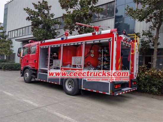 2000L dry powderIni ialah trak bomba nitrogen serbuk kering yang dibina berasaskan ISUZU FTR Chassis. Ia dilengkapi dengan enjin ISUZU 4HK1-TC60 berkuasa dengan sesaran 5.19L dan kuasa keluaran 380 kuasa kuda. Ia menggunakan mod pemanduan 4X2 dan dilengkapi kotak gear 6-kelajuan MLD. Kelajuan maksimum boleh mencapai 90km/j, yang boleh menyesuaikan diri dengan pelbagai keadaan jalan yang kompleks. Dari segi sistem memadam kebakaran, trak itu dilengkapi dengan dua tangki simpanan serbuk kering keluli karbon 2000 liter dan 12 silinder nitrogen 80 liter dengan tekanan reka bentuk 15MPa.