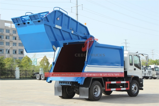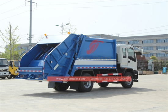 Trak pemadat sampah ISUZU FVR 240hp(juga dipanggilTrak mampat sampah, lori sampah penekan hidraulik, lori sampah pemuat belakang, lori sampah pemadat, lori pemampat sampah, lori mampatan sampah muatan belakang, kenderaan pemungut sisa) ialah kenderaan khusus mewah yang digunakan untuk pengumpulan dan pengangkutan sisa pepejal. Ia secara cekap memadatkan dan memadatkan sejumlah besar sekerap untuk memaksimumkan penggunaan ruang di dalam trak. Trak ini dilengkapi mekanisme pemadatan hidraulik di dalam corong tempat sisa dimuatkan. Apabila bahan buangan ditambah, pemadat mengurangkan isipadunya dengan menggunakan tekanan, membolehkan untuk mengumpul dan mengangkut lebih banyak sisa dalam satu perjalanan. Ia biasanya digunakan dalam sistem pengurusan sisa perbandaran untuk mengumpul, mengangkut, dan membuang sampah dan bahan sisa pepejal lain dengan cekap.