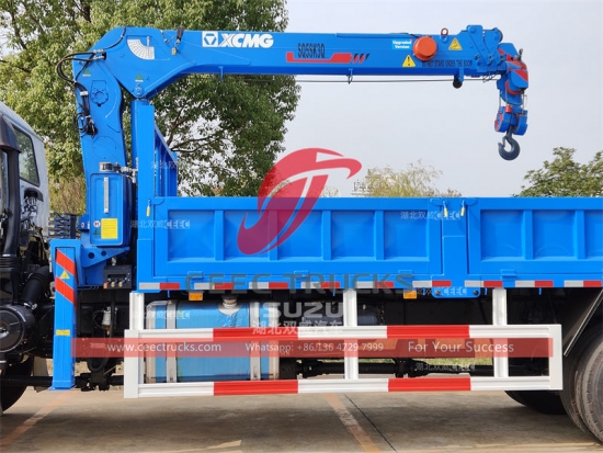 Trak kren ISUZU FVR 5tan, casis pemacu tangan kiri ISUZU FVR 4x4, kotak gear manual 6-anjakan MLD, enjin diesel ISUZU 240HP, kren boom teleskopik XCMG 5 tan jenama terkenal China, dimensi badan kargo mengikut keperluan, lukisan dan logo bergantung pada keperluan.