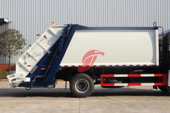 Pemadat sampah 14 meter padu membuktikan kepelbagaian dan kapasiti trak itu. Direka bentuk untuk memaksimumkan kecekapan pengumpulan sampah, pemadat menyepadukan dengan lancar dengan casis, mengoptimumkan operasi pemuatan dan meminimumkan masa pemulihan. Mekanismenya yang direka dengan baik memastikan pemadatan menyeluruh, membolehkan trak menampung sejumlah besar sampah sambil mengekalkan kecekapan operasi.