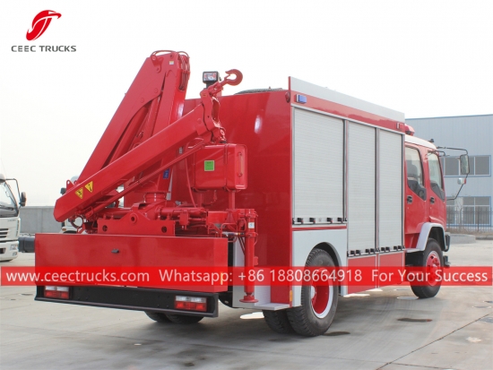 Trak bomba penyelamat kecemasan ISUZU FVR(jugadipanggil Trak pemadam kebakaran ISUZU dengan kren, Kenderaan Penyelamat Kebakaran Kecemasan ISUZU, trak pemadam kebakaran ISUZU dengan sistem lampu dan kren,ISUZU Lori Bomba FVRdengan Kren, trak bomba berkualiti terbaik dengan sistem pencahayaan dan kren)ialahmemohon untuk pasukan bomba bandar besar dan sederhana, perusahaan petrokimia, lapangan terbang dan pelabuhan dan sebagainya, untuk meletakkan api kawasan besar kami minyak dan bahan lain.