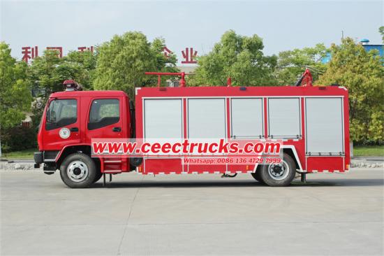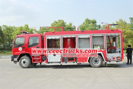 The Tangki air Isuzu FVR dan trak bomba serbuk kering mempunyai prestasi pelbagai fungsi, dengan jumlah berat badan 18,000 kg, sistem pemanduan 4x2 dan 6HK1-TCG61 enjin diesel dengan kuasa 221 kilowatt dan kelajuan maksimum 90 km/j. Kenderaan itu dilengkapi dengan tangki air 4 meter padu dan2000kg tangki serbuk kering, serta pam api CB10/40 dengan tekanan kerja 1~4 MPa dan kadar alir 40 liter/saat. Selain itu, kenderaan itu turut dilengkapi meriam air PS 40 dan PF 30 serbuk kering meriam, dengan jarak kerja sehingga 55 meter dan13meter masing-masing, dan sudut operasi dari -30° hingga 80°, memenuhi keperluan memadam kebakaran yang berbeza. Pada masa yang sama, trak itu juga boleh dilengkapi dengan tangki bahan yang berbeza, yang boleh dibahagikan kepada beberapa petak mengikut keperluan, dan boleh dilengkapi dengan pam daripada pelbagai jenama terkenal, yang mempunyai fleksibiliti dan kebolehgunaan yang tinggi.