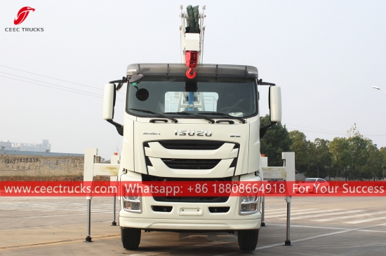 Trak angkat kren baldi 16m ISUZU, ISUZU GIGA pacuan kiri casis 4x2, kotak gear manual 12-anjakan PANTAS, enjin diesel 380HP tugas berat ISUZU, mengecat dan logo bergantung pada keperluan. Kotak kawalan bahasa pelanggan.