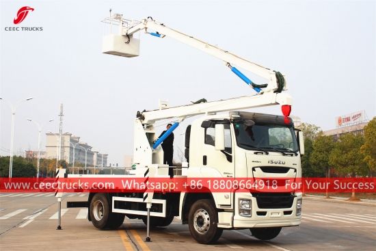 Trak Pelantar Udara 16m ISUZU GIGA (jugadipanggil ISUZU GIGATrak Kerja Udara, Trak Pengangkat ISUZU, platform udara dipasang trak ISUZU GIGA, kenderaan baldi angkat lengan berkualiti baik, pengangkat boom dipasang trak ISUZU GIGA, trak Operasi Platform Tinggi ISUZU GIGA)sesuai untuk penyelenggaraan lampu isyarat, lampu jalan, pokok landskap, pembersihan/penetapan papan tanda dan kerja-kerja udara tinggi yang lain.