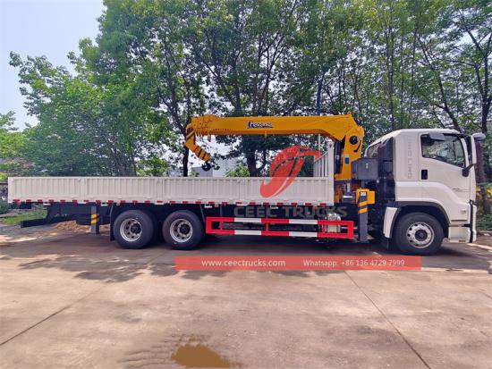 Isuzu ini GIGA 6x4 trak mudah alih mengeluarkan 12 tan kren ialah trak yang berkuasa dan direka dengan baik. Ia dilengkapi dengan ISUZU 6UZ1 enjin diesel dengan kuasa berkuasa sebanyak 380 HP, yang boleh memenuhi pelbagai keperluan kerja. Teksi itu boleh memuatkan tiga orang dan dilengkapi dengan penghawa dingin, menyediakan persekitaran pemanduan yang selesa untuk pemandu. Bahagian atas Isuzu GIGA 12 trak kren kargo tan dilengkapi dengan kren boom teleskopik dengan kapasiti angkat maksimum sebanyak 120 00kg dan putaran penuh 360°.