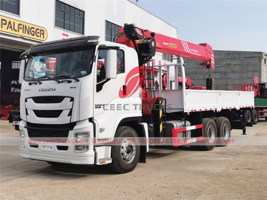 Lori ISUZU GIGA Dengan Kren(juga dipanggil Kren boom teleskopik Palfinger 16 tan, trak kren ISUZU GIGA, kren pemasangan trak ISUZU GIGA, trak ISUZU 380HP dengan kren, trak kren Teleskopik Boom untuk dijual, trak kargo ISUZU dengan kren, kren boom berdasarkan ISUZU GIGA crane, trak roda ISUZU GIGAdigunakan untuk mengangkat kargo, memuat, mengangkut dan memunggah barang berat.