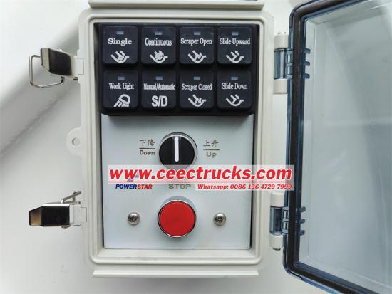 Trak pemadat pemuat belakang Isuzu Giga 6x4 menampilkan sistem mampatan berkuasa yang digerakkan oleh silinder hidraulik, yang meminimumkan jumlah sisa dengan ketara. Kotak kawalan elektrik yang dipasang di kabin, tuil hidraulik bahagian pemandu, dan kawalan elektrik/manual yang dipasang pada pintu belakang menyediakan operasi yang serba boleh. Reka bentuk teguh ini memastikan pengurusan sisa yang cekap dan kapasiti pemuatan, menjadikannya ideal untuk pelbagai tugas pengumpulan sisa.