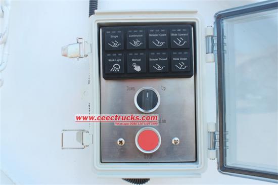 Dengan dua cara kaedah kawalan manual dan automatik, pengendali boleh beroperasi di dalam kabin, di belakang trak, sangat mudah dan cekap, juga dilengkapi dengan peranti berfungsi butang berhenti brek kecemasan. |