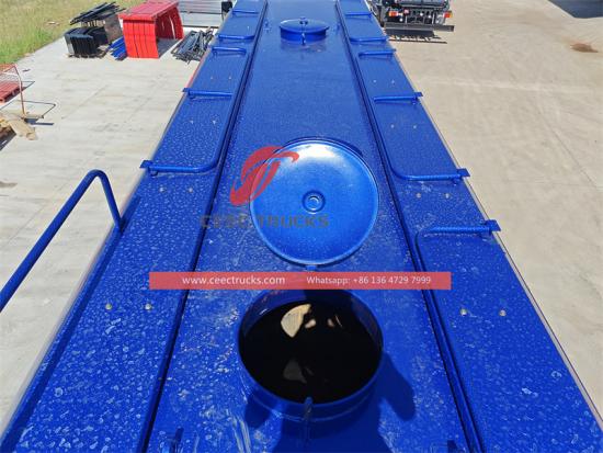 Kapasiti tangki air trak taburan air Isuzu GIGA mencapai lebih daripada 30,000L, yang boleh memenuhi keperluan operasi percikan air kawasan besar, mengurangkan bilangan penambahan air yang kerap, dan meningkatkan kecekapan operasi. Tangki air diperbuat daripada keluli karbon berkualiti tinggi (Q235) dan dibuat menjadi badan tangki berbentuk bujur. Ia mempunyai kelebihan kekuatan tinggi dan rintangan kakisan, memastikan hayat perkhidmatan tangki air.