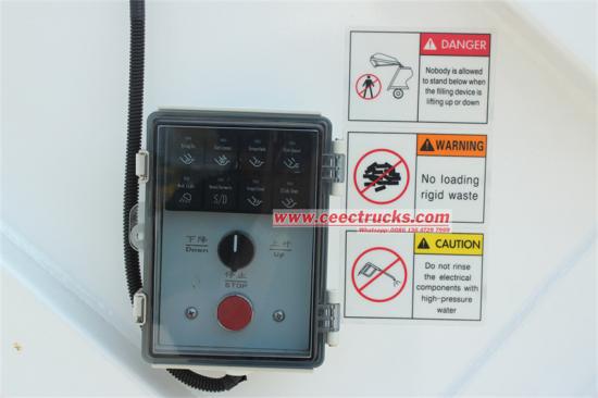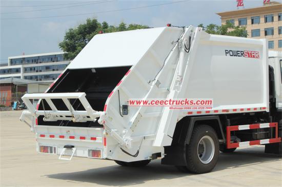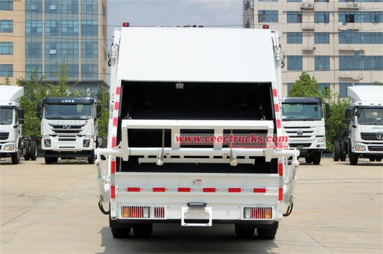 Fully sealed loading hooperIni ialah trak sampah muatan belakang Isuzu dengan prestasi cemerlang, dilengkapi dengan a4HK1-TC50 205 enjin kuasa kuda, kelajuan tertinggi 90 km/j, dan 6 kotak gear hadapan dan 1 undur. Tong sampah mempunyai kapasiti 12 meter padu dan diperbuat daripada keluli karbon 4mm. Ia mempunyai reka bentuk anti-kebocoran, pemuatan beban belakang, dan sistem angkat jenis tong pilihan. Komp sampahpelakon nisbah ialah 1/3 - 1/4, dan terdapat sistem kawalan di bahagian belakang kenderaan dan belakang teksi.