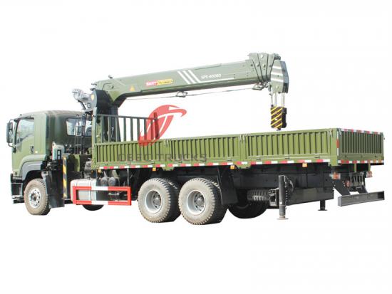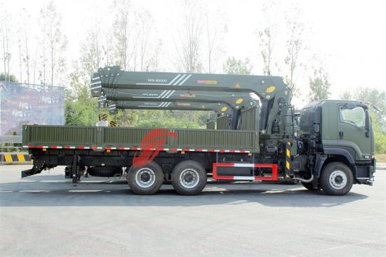 Isuzu ini GIGA 6x4 trak mudah alih mengeluarkan 14 tan kren ialah trak yang berkuasa dan direka dengan baik. Ia dilengkapi dengan ISUZU 6UZ1 enjin diesel dengan kuasa berkuasa 380 HP, yang boleh memenuhi pelbagai keperluan kerja. Teksi itu boleh memuatkan tiga orang dan dilengkapi dengan penghawa dingin, menyediakan persekitaran pemanduan yang selesa untuk pemandu. Bahagian atas Isuzu GIGA 14 trak kren kargo tan dilengkapi dengan kren boom teleskopik dengan kapasiti angkat maksimum sebanyak 120 00kg dan putaran penuh 360°.