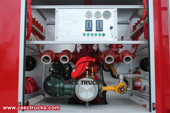 Di bahagian belakang trak, bilik pam menempatkan sistem pam tekanan tinggi yang menggerakkan sistem penghantaran air dan buih. Bilik ini direka bentuk untuk melindungi pam dan peralatan yang berkaitan daripada persekitaran yang keras yang sering dihadapi semasa operasi memadam kebakaran.