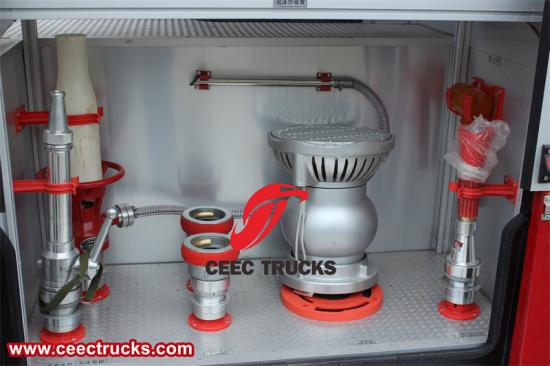 Alat pemadam: Trak bomba dilengkapi dengan alat pemadam api serbuk kering, yang sesuai untuk memadam kebakaran seperti minyak dan peralatan elektrik.