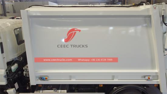 Pinggir baldi belakang tinggi pemuat belakang Isuzu FTR boleh membentuk kesan pembendungan yang lebih baik. Apabila tong sampah diangkat dan dibuang oleh lengan pengangkat, ia dapat mengelakkan sampah daripada diterbangkan atau bertaburan di luar kenderaan dengan lebih berkesan, terutamanya apabila angin kuat atau sampah ringan (seperti sisa kertas, beg plastik). Sampah di dalam tong sampah jatuh dari tempat tinggi baldi ke bahagian dalam tong sampah, mengurangkan kemungkinan sampah melantun semula atau terpercik keluar di pintu masuk, membantu memastikan kawasan kerja bersih dan bersih.