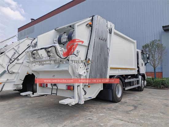 Teras pemuat belakang Sampah ialah mekanisme mampatan (seperti pengikis dan plat gelongsor) untuk memampatkan sampah yang longgar. Trak pemadat sampah Isuzu GIGA F-serious 16CBM biasanya berbalas-balas dari belakang ke hadapan kotak.