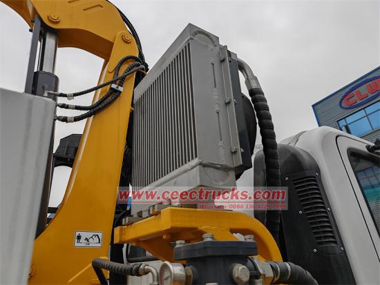 Yang paling menarik perhatian ialah kren pegang kren pemuat XCMG LQS78A yang dipasang pada kenderaan. Kren ini menyepadukan teknologi hidraulik termaju dan struktur mekanikal yang tepat, dengan tork angkat maksimum 6.8TM, berat angkat maksimum 700kg, ketinggian angkat maksimum 9.8m, panjang kren 7.8m, dan sudut putaran 380 yang menakjubkan ° , yang hampir boleh mencapai operasi menyeluruh tanpa jalan buntu. Hujung kren dilengkapi dengan penggenggam dua cakar yang direka untuk merebut kayu balak. Saiz cengkaman terbentang maksimum ialah 1220mm. Ia boleh merebut kayu balak seberat sehingga 1 tan setiap kali, meningkatkan kecekapan pengurusan sumber perhutanan.