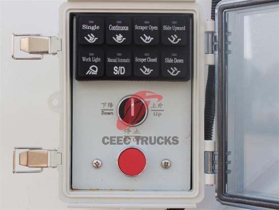 Trak Pemadat Tolak Isuzu FVR GIGA bukan sahaja berfungsi dengan baik dalam kuasa, penghantaran, isipadu tong sampah, kecekapan mampatan, dsb., tetapi sistem kawalan canggihnya menjadikan model ini unik dalam bidang pelupusan sampah bandar. Berikut akan memperkenalkan secara terperinci komponen kawalan utama trak sampah ini, seperti Kotak Kawalan Elektrik (Dalam kabin), Kayu Joy Kawalan Hidraulik (Di sisi pemacu), Kotak Kawalan Elektrik (Dalam pintu belakang), dan Kotak Kawalan Manual (Dalam pintu belakang).