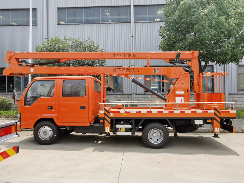 Customized insulated bucket for 220V 230V operationTrak platform kerja udara 16m kabin berkembar ISUZUjuga dipanggilTrak kerja udara lengan lipat ISUZU 600P dengan bakul lelaki 16 meter, yang merupakan kenderaan khas untuk kerja udara yang diubah suai berdasarkan casis trak Isuzu 600P NKR Jepun. barisan kabin berkembar dengan 4 pintu dan tersedia untuk 1 pemandu dan 4 penumpang, dilengkapi dengan enjin diesel 4KH1CN6LB 88KW/120HP dan pelepasan boleh 2999ml, kotak gear manual MSB 5 shift dengan 5 ke hadapan dan 1 belakang belakang, tayar standard 7.00R16 tubelss termasuk satu tayar ganti.Lori Isuzu Manliftdengan cciri bijih ialah struktur lengan lipat, dengan ketinggian operasi maksimum sehingga 16 meter,Ia menggunakan reka bentuk lengan lipat tiga bahagian, menyokong putaran penuh 360°, dan jejari operasi boleh mencapai 7-7.5 meter. Beban berkadar platform biasanya 200 kg dan boleh membawa 2 orang. OPilihan untuk dilengkapi dengan bahan keluli tahan karat atau bakul lelaki keluli karbon untuk kerja tahan lama, juga pilihan untuk dilengkapi dengan bakul lelaki bahan gentian kaca untuk kerja elektrik di bawah voltan 220V, 230V, 260V, 330V. dan lain-lain sesuai untuk pelbagai senario kerja udara.