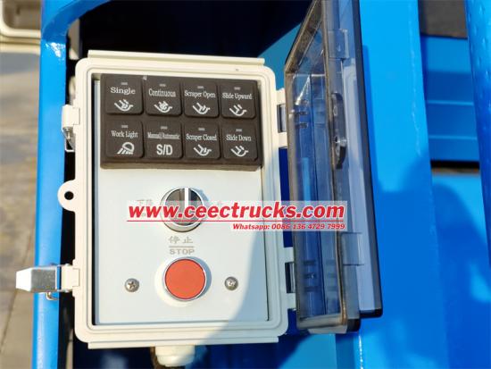 Isuzu ELF chassis,3 operation modesTrak pemadat sampah ringan ISUZU NKR ini ialah model sanitasi bandar yang cekap dan praktikal dengan prestasi teknikal dan praktikal yang cemerlang. Kenderaan itu dilengkapi dengan enjin 4HK1CN6LB dengan sesaran 2.99L dan kuasa maksimum 120 kuasa kuda. Ia menggunakan reka bentuk penyejukan air 4 silinder sebaris pengecas turbo, dan sistem kuasa boleh dipercayai dan stabil. Trak sampah Isuzu menggunakan konfigurasi pacuan 4*2, jumlah jisim 7300kg, dan jarak roda 3815mm. Ia adalah trak ringan yang mudah untuk pembuangan sampah di jalan-jalan dan lorong-lorong bandar. Tong sampah mempunyai kapasiti 8 meter padu dan menggunakan reka bentuk arka. Panel bawah dan sisi adalah keluli khas Q235 setebal 4mm. Proses pengacuan keseluruhan memastikan kekuatan struktur.