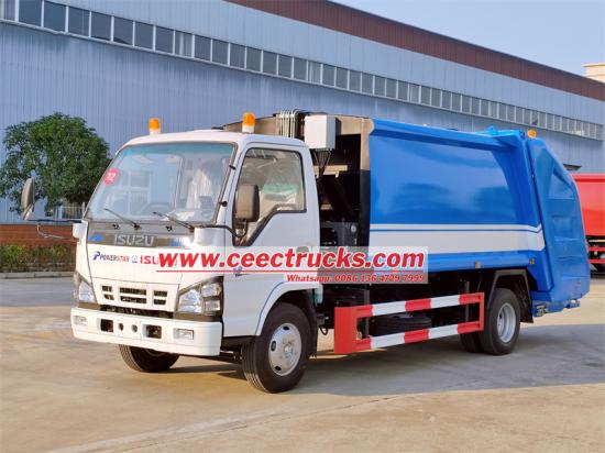 Trak pemadat sampah ringan ISUZU NKR ini ialah model sanitasi bandar yang cekap dan praktikal dengan prestasi teknikal dan praktikal yang cemerlang. Kenderaan itu dilengkapi dengan enjin 4HK1CN6LB dengan sesaran 2.99L dan kuasa maksimum 120 kuasa kuda. Ia menggunakan reka bentuk penyejukan air 4 silinder sebaris pengecas turbo, dan sistem kuasa boleh dipercayai dan stabil. Trak sampah Isuzu menggunakan konfigurasi pacuan 4*2, jumlah jisim 7300kg, dan jarak roda 3815mm. Ia adalah trak ringan yang mudah untuk pembuangan sampah di jalan-jalan dan lorong-lorong bandar. Tong sampah mempunyai kapasiti 8 meter padu dan menggunakan reka bentuk arka. Panel bawah dan sisi adalah keluli khas Q235 setebal 4mm. Proses pengacuan keseluruhan memastikan kekuatan struktur.