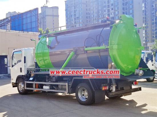 Trak penyedut vakum Isuzu NPR dengan plat bawah produk ISUZU, kuasa tinggi, dilengkapi dengan pam minyak 190hp. Hotel ini dilengkapi dengan sistem penghawa dingin yang dipanaskan dan disejukkan yang boleh memuatkan 3 orang. Sistem pemanduan 4X2 untuk trak sedut vakum Isuzu NQR, dilengkapi dengan kotak anjakan manual 6-kelajuan, kelajuan maksimum mungkin 90km/j. Trak sedutan vakum Isuzu ELF dengan kualiti bahan keluli, kapasiti 8000-10000 liter, dilengkapi dengan 7 paip sedutan, pam vakum kecekapan tinggi, kerja sedutan siap cepat.