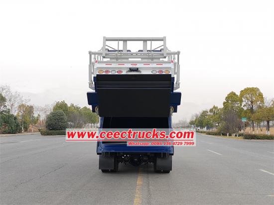 Dari segi reka bentuk badan, kenderaan itu menggunakan tong sampah 10cbm, dan reka bentuk berkapasiti besar meningkatkan kecekapan pengumpulan sampah. Bahagian belakang tong sampah dilengkapi dengan mekanisme memusing baldi, yang memudahkan pengangkatan automatik tong sampah ke dalam badan kereta, merealisasikan pemuatan sampah secara mekanikal. Dari segi operasi, kenderaan itu menyediakan 4 kaedah operasi, yang boleh mengatasi pelbagai senario operasi secara fleksibel dan meningkatkan kecekapan kerja.