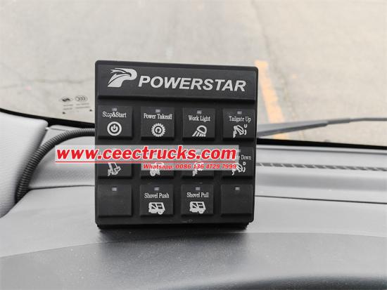 â— PTO (peranti output kuasa):Mulakan atau hentikan kuasa mekanisme pemampatan sampah.