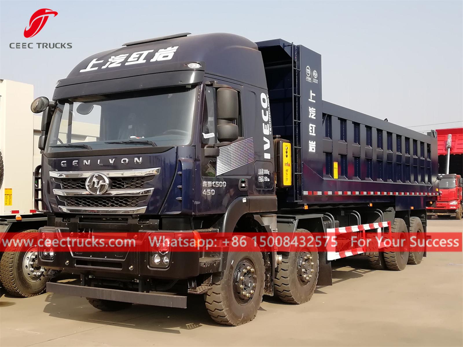 Trak pembuangan IVECO Genylon 8x4 (juga dipanggil trak dump tugas berat, trak tipper, trak tipper 70tan, trak dump angkat depan Hyva, trak dump, trak dump batu pasir pembinaan, lori tipper, lori tip, tipping trak dump, tipper dan lori, lori tipper)direka untuk pasaran trak berat mewah di luar negara dan domestik. Untuk mengatasi pesaingnya dalam persaingan global, komponen utama trak tipper direka bentuk dengan kerjasama rapat dengan pembekal terkemuka di dunia.