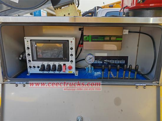 ● Kenderaan dilengkapi dengan skrin LCD 7-inci untuk memaparkan panjang lengan, sudut ketinggian, ketinggian platform, ketinggian kerja, dll. dalam masa nyata;