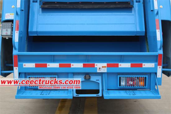Trak itu bermegahsistem kawalan lanjutanyang memudahkan operasi yang mudah dan cekap. Ia mempunyai sistem kawalan elektrik Taiwan Yonghong PLC (Programmable Logic Controller), yang membolehkan automasi proses pemadatan sampah yang tepat dan boleh dipercayai. Terdapat dua set butang kawalan elektrik yang diletakkan secara strategik untuk kemudahan pengendali: satu set di dalam teksi pemandu dan satu set lagi di sebelah kiri pintu belakang. Selain itu, trak itu dilengkapi dengan peranti operasi manual hidraulik yang terletak di bahagian belakang teksi, menyediakan kaedah alternatif untuk mengawal fungsi pemadatan sampah sekiranya berlaku kegagalan sistem elektrik atau untuk override manual. Sistem kawalan dwi ini memastikan trak boleh dikendalikan dengan lancar dan cekap, memenuhi pelbagai keperluan operasi pengurusan sisa.