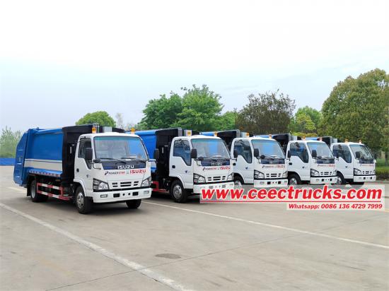 Trak pemadat sampah Isuzu 8cbm diubah suai pada casis Isuzu NKR 600P, dengan jarak roda 3815mm, enjin 4KH1CN6LB 120HP, sesaran 2999ml, pelepasan EURO 6, Isuzu MSB 5-kelajuan kotak, kotak gear padu 80Km maksimum badan/11. dengan sisi 4mm dan ketebalan 5mm bawah, rawatan anti-karat, dan dikendalikan dan dikawal oleh sistem kawalan elektronik Taiwan Yonghong PLC dan sistem operasi manual hidraulik, termasuk 1 set butang operasi kawalan elektronik di dalam teksi dan 1 set di sebelah kiri pintu belakang (2 set kesemuanya), dan 1 set peranti operasi manual hidraulik di belakang teksi.