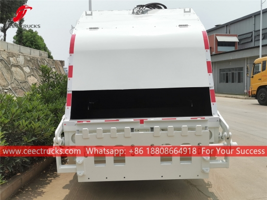 Trak mampatan sampah HOWO RHD, casis trak menggunakan enjin diesel CUMMINS 130HP, gear transmisi 6-anjakan Manual. Kotak kawalan PLC untuk operasi mudah. Semua lukisan dan logo berdasarkan keperluan pelanggan.