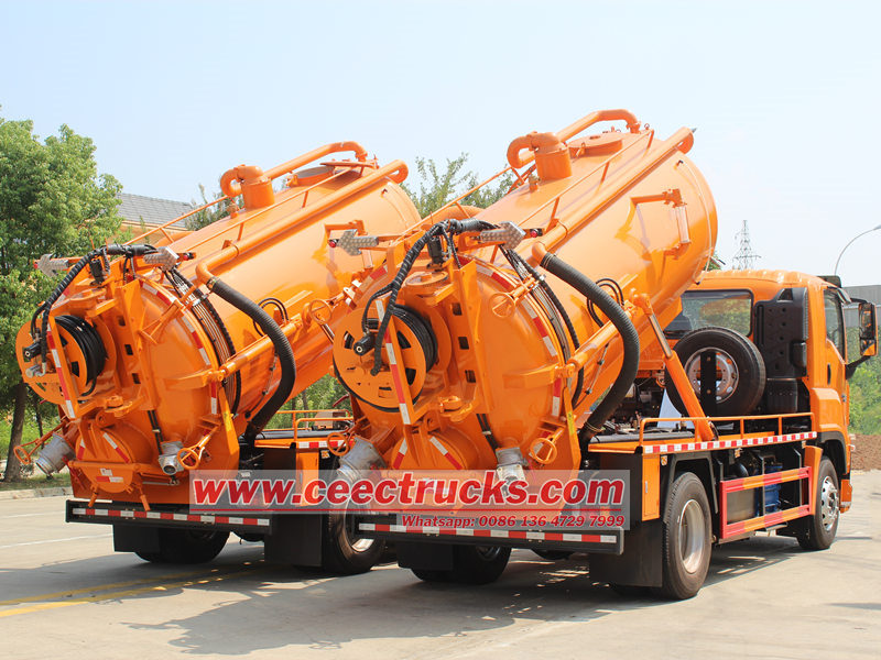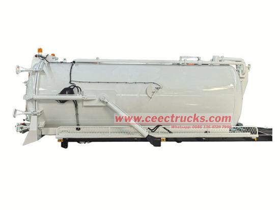 Badan lori tangki septik terutamanya terdiri daripada tangki vakum 10cbm, pam vakum, hos sedutan dan sistem hidraulik. Tangki itu dibina daripada keluli berkekuatan tinggi, memastikan pengedap yang sangat baik untuk mengelakkan pencemaran sekunder. Pam vakum MORO menyediakan sedutan yang kuat, dengan cepat mengeluarkan enap cemar, kumbahan dan buburan. Paip sedutan kumbahan boleh dikendalikan secara fleksibel untuk memenuhi keperluan pelbagai senario operasi.
