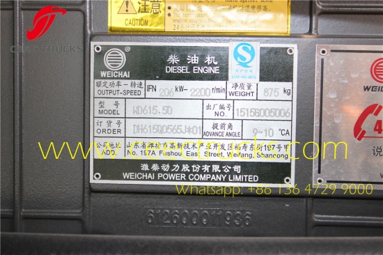 ★Enjin WEICHAI WD615.50, pelepasan Euro 2, 280ps kuat, dan kotak gear mekanikal manual 8 anjakan