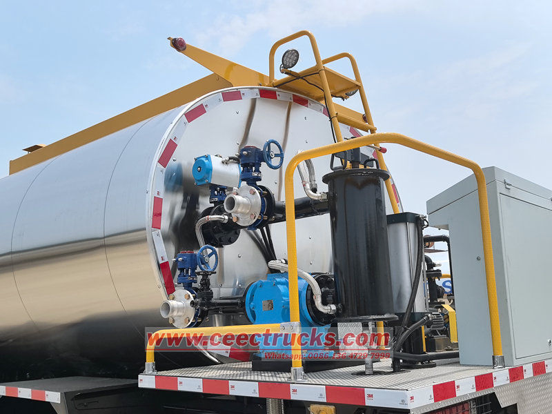 Tangki trak pengedar asfalt jalan Shacman adalah salah satu komponen teras. Ia kebanyakannya diperbuat daripada keluli karbon berkekuatan tinggi atau keluli tahan karat berkualiti tinggi. Ia mempunyai tekanan dan rintangan hentaman yang sangat baik dan boleh menyesuaikan diri dengan pengangkutan dan operasi di bawah keadaan jalan yang kompleks. Tangki adalah struktur dua lapisan dengan bahan penebat haba kecekapan tinggi di tengah. Dengan sistem pemanasan elektrik yang canggih, ia boleh mengekalkan suhu asfalt pada 180-220℃ dengan tepat, dengan julat turun naik suhu yang sangat kecil, berkesan menghalang pengasingan dan pemejalan asfalt, memastikan kecairannya dan menjamin kualiti pembinaan.