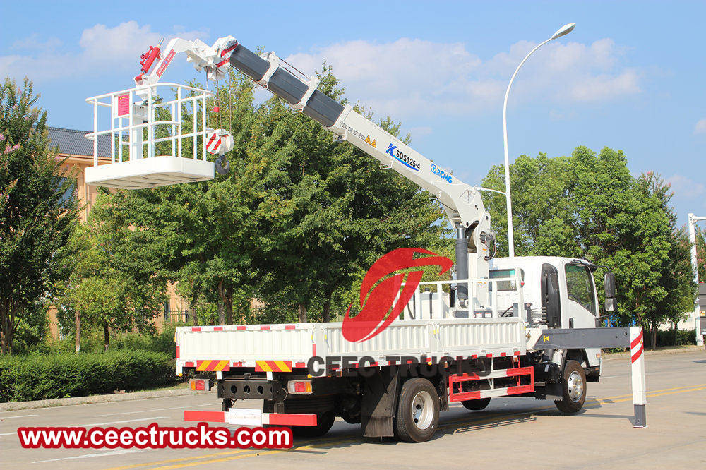 Selain daripada fungsi angkat standardnya, CEEC juga telah memasang bakul kerja altitud tinggi pada iniTrak kren ISUZUmengikut keperluan khas pelanggan. Reka bentuk inovatif ini membolehkan kenderaan bukan sahaja melakukan pengangkatan berat tetapi juga menjalankan operasi altitud tinggi seperti penyelenggaraan peralatan dan pembinaan dinding luar, meningkatkan kecekapan kerja dan keselamatan operasi dengan banyak. Perkhidmatan tersuai ini bukan sahaja mencerminkan pemahaman mendalam CEEC tentang keperluan pelanggan tetapi juga menunjukkan kepakaran teknikalnya yang kukuh dalam bidang pengubahsuaian kenderaan khas.