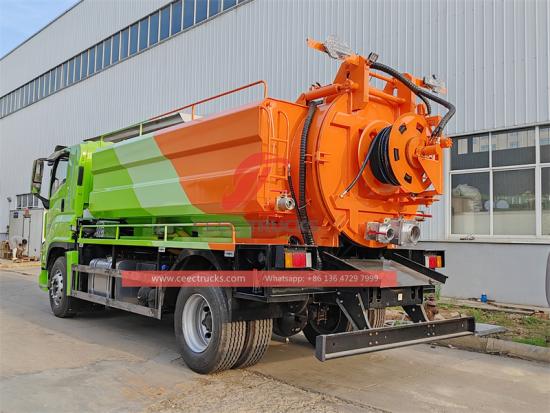 1. Kapasiti rawatan kumbahan yang cekap: Reka bentuk gabungan 6 Tangki kumbahan 000 liter dan 4 Tangki air bersih 000 liter adalah kelebihan teras Isuzu FVR v tangki akuum lori. Dalam pengurusan kumbahan bandar, selalunya terdapat situasi di mana sejumlah besar kumbahan perlu dirawat dengan cepat, seperti pengumpulan air selepas hujan lebat atau penyumbatan paip yang serius. Dengan tangki berkapasiti besar, pengendali boleh merawat lebih banyak kumbahan dalam satu penghantaran, meningkatkan kecekapan kerja. Pada masa yang sama, 4 Tangki air bersih berkapasiti 000 liter memastikan terdapat air yang mencukupi untuk operasi pembilasan dan pembersihan paip, tanpa perlu berulang-alik yang kerap untuk menambah air. Ini bukan sahaja menjimatkan masa dan minyak, tetapi juga mengurangkan bilangan perjalanan pergi dan balik kenderaan di jalan raya, secara tidak langsung mengurangkan tekanan lalu lintas dan pelepasan karbon.